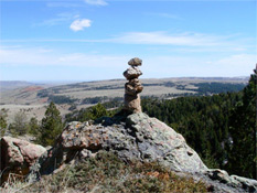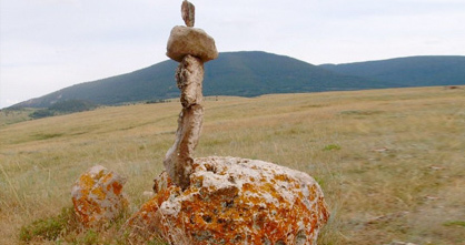 " Love of 'the Grandfathers' or stones is reflected in the artful balancing of cairns and stupa formations all over the mountainside and pastures. "